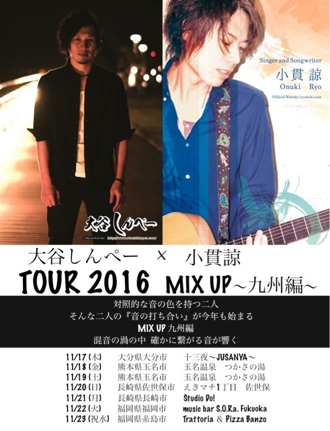 シンガーソングライターの大谷しんぺーさんと九州ツアーをまわらせていただくことになりましたー!!!