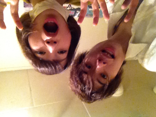 口の空いているヒグチアイちゃんと、精一杯目が合いている小貫です。